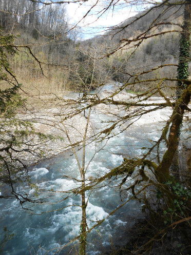 Вдоль реки Мзымта протянулись новоиспеченные, аккуратные и чистые набережные.