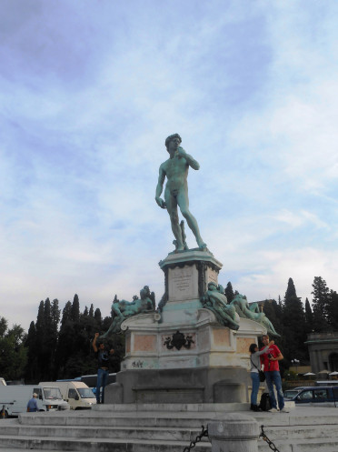 В настоящий момент в миру существует 4 копии Давида, близкие по своим размерам к оригиналу. Две из них (1 - рядом с Паллаццо Веккьо на площади Синьории, 2 - в Пушкинском музее в Москве) мы уже видели, поэтому решили посмотреть на третью, расположенную во Флоренции на площади Микеланджело.