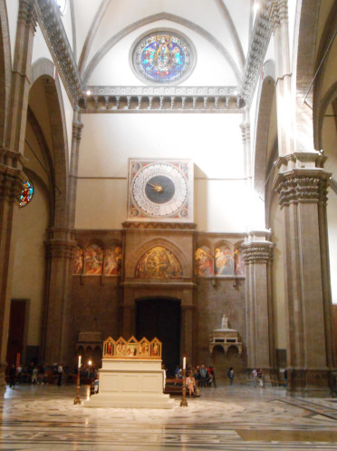 Мы прошли от моста прямо вглубь города, пообедали в одном из заведений и вышли к железнодорожной станции. Площадь у вокзала выходила на массивную заднюю часть церкви Санта-Мария Новелла.