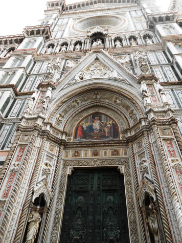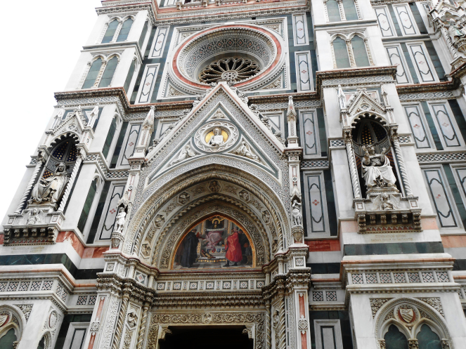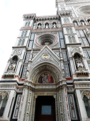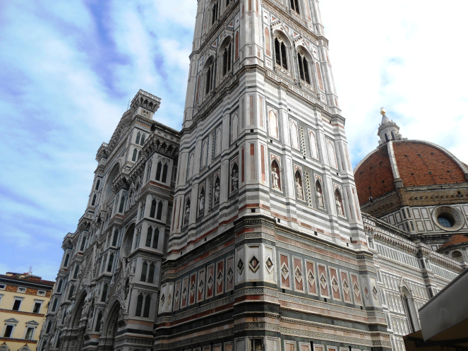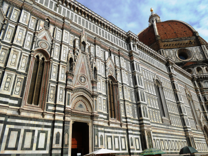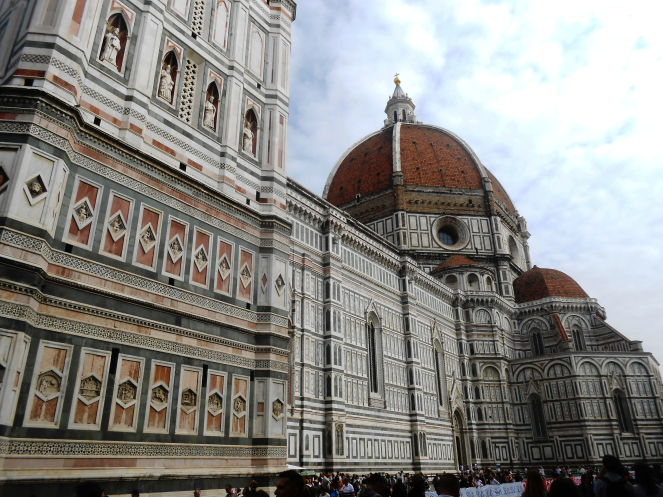 И вот мы вышли к собору Санта-Мария-дель-Фьоре, украшенному бело-зеленым мраморным кружевом.