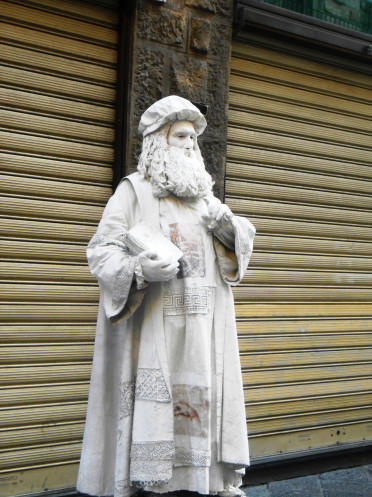 Тут же на площади расположился мим в образе гения да Винчи.