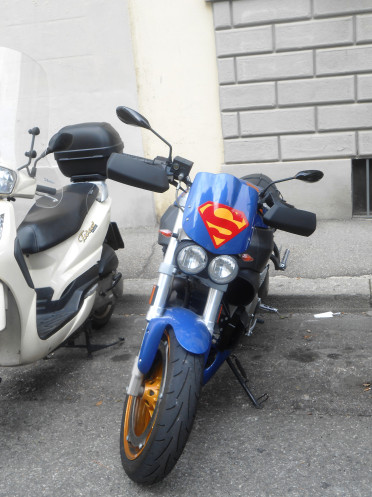 На наши глаза постоянно попадались забавные дорожные знаки. Мы поначалу восприняли это как нечто интересное и неординарное, в то время как эти знаки оказались творческими работами французского уличного художника - Клета Абрахама, прожившего порядка 20 лет в Италии. Он обходит по ночам окрестности города и наклеивает специальную пленку на дорожные знаки, отчего знаки приобретают порой забавный, но глубокий смысл. Сначала он это делал втайне, и даже раз был серьезно оштрафован. Но городские власти, увидев, что эта фишка нравится туристам, разрешили ему свободно выражаться в своем творчестве. В итоге, Клет из хобби сделал бизнес и даже открыл свою собственную студию в городе.