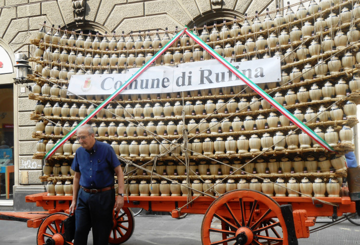 Но поскольку у нас был всего лишь день, мы отправились дальше. На оживленных площадях люди из различных комунн (маленьких городов Италии) продавали свои вина. У одной из таких повозок с вином стоял впечатленный мужчина и долго фотографировался, так что заснять одну только повозку не удалось.)