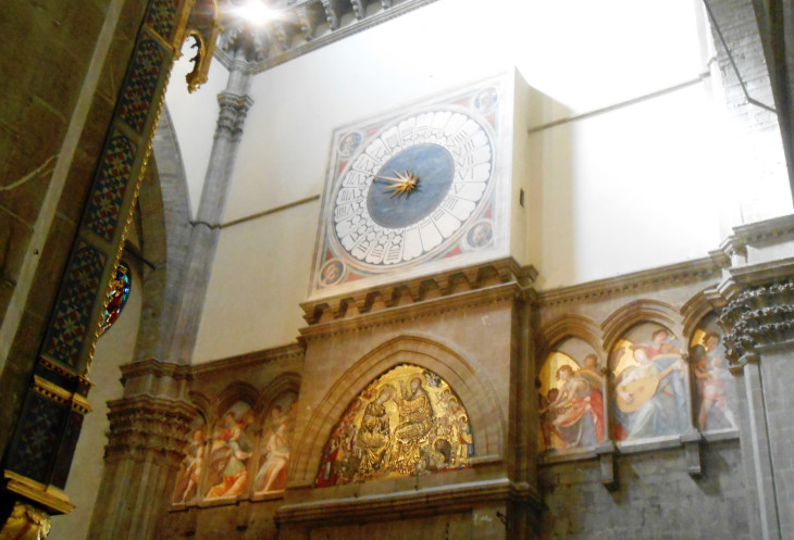Под главным нефом, расположены необычные часы. На циферблате часов всего одна стрелка, которая движется против общепринятого направления.