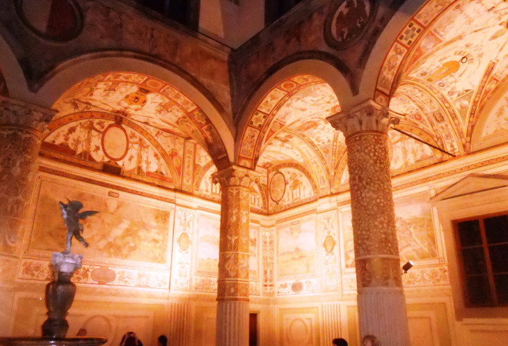 Из окон галереи открывался прекрасный вид на Коридор Вазари (справа) и Понте Веккьо (по центру).