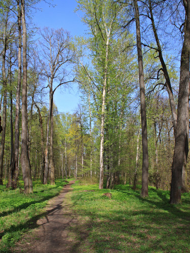 От парка до собора интернет советовал нам идти пешком, любуясь окрестностями села и появляющимися среди деревьев куполами храма, что мы и сделали.