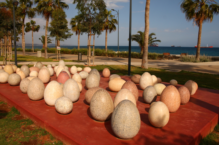 Изюминкой парка-набережной Лимассола является парк скульптур, расположенный на его территории. Парк скульптур был открыт здесь в 2003 году. В парке установлено около 20 скульптур, которые созданы зарубежными и местными художниками. Здесь установлены работы египетского художника Ахмета Эль-Стоаху, немца Виктора Бонато, израильтянина Саадия Бахат, греческих художников Манолиса Тсомбанакиса, Елены Черной, Костаса Дикефалоса, Георгиуса Тсараса, Марии Киприану, Георгиуса Хоуляраса, Христоса Риганаса, Никоса Коуроусииса, Кириакоса Рокоса. Говорят, что скульптуры постоянно обновляются, но некоторые экспозиции неизменны уже много лет. Как например вот эти "яйца", ставшие уже символом набережной Молос.