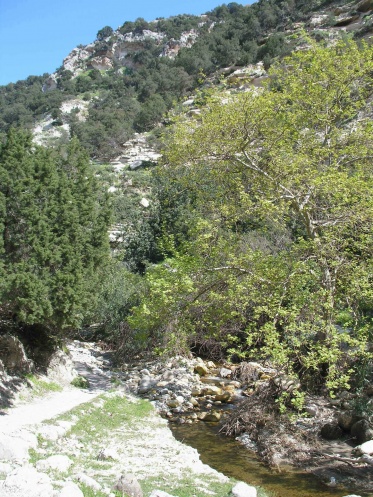 Горы по стороным ущелья выглядят изумительно, и в разное время суток освещаются по-разному. Растительность там обильная из-за хорошей влажности. В некоторых местах трава напоминала наши российские леса, даже крапива росла. Много южных сосен (можно взять на память большую шишку), какие-то лиственные деревья, можжевельник, вездесущие колючки. Далеко в ущелье мы дошли до куста тростника... 5 метров высотой! Кружит голову ультрамариновое небо в высоте, захватывают дух напоенные солнцем горы, журчит вода по камням, шебечут птицы, а к вечеру заквакали оглушительные жабы.