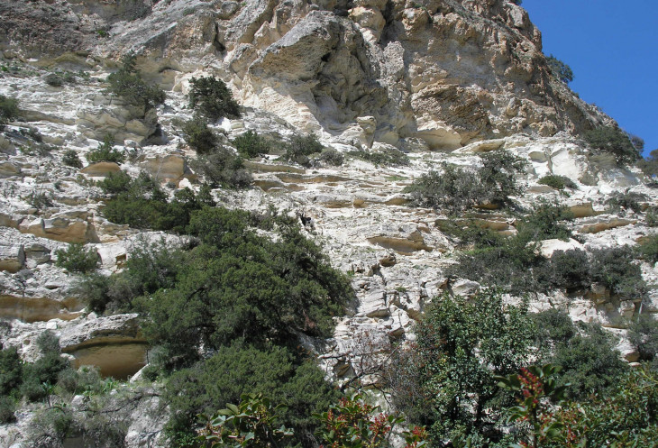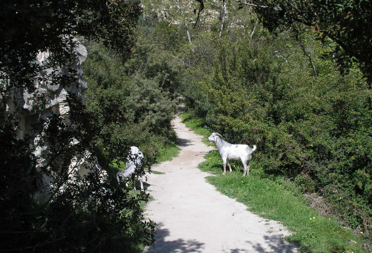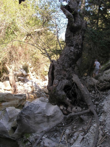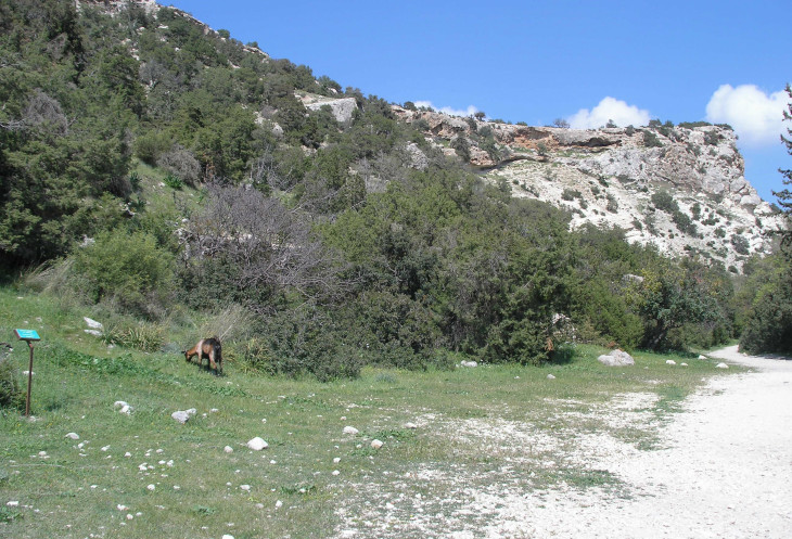 Мимо всего этого великолепия вы проезжаете, так как впереди ждет ущелье. Вход в него вполне благоустроенный, тропинка ровная, по бокам тропинки около интересных деревьев стоят таблички с их латинским, европейским и греческим названием. Уже тут вы можете встретиться с козами. Это не горные козы вопреки частому заблуждению. Это домашние козы с козьей фермы из ближайшего ущелья Аспрос, пасущиеся сами по себе по горам. Но они прямо как их дикие сородичи виртуозно прыгают по склонам. У некоторых из них колокольчики на шеях, так что вы их услышите заранее.