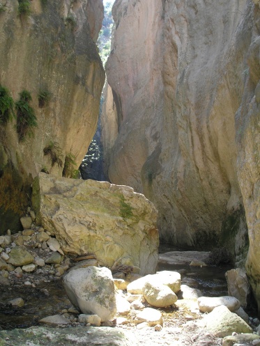 Глубже в ущелье стены постепенно начинают сужаться, а тропинка — ухудшаться. По сути большую часть прогулки вам придется прыгать с камешка на камешек то по одному берегу ущелья, то по другому, а то и посередине. В некоторых местах проложены ступеньки или протоптаны более-менее удобные тропинки. Потеряться там невозможно, так как путь всего один — по речушке ущелья вперед (а потом назад). На окружающие горы могут вскарабкаться только козы и альпинисты.