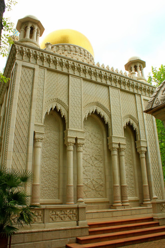 Прямо напротив входа в парк красуется беседка мавританского и испанского стиля.
