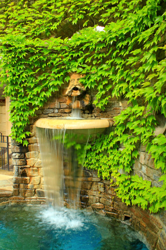 Одной из ярких и запоминающихся достопримечательностей города можно считать белоснежный фонтан, украшенный золотыми статуэтками и узорами.