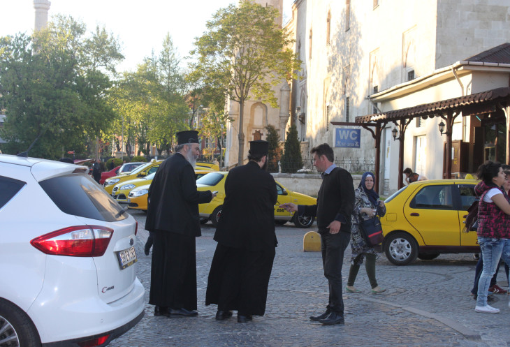 Последний кадр в городе: греческий священник на турецком мило разговаривает со знакомыми турками, которые называют его «дружищем».