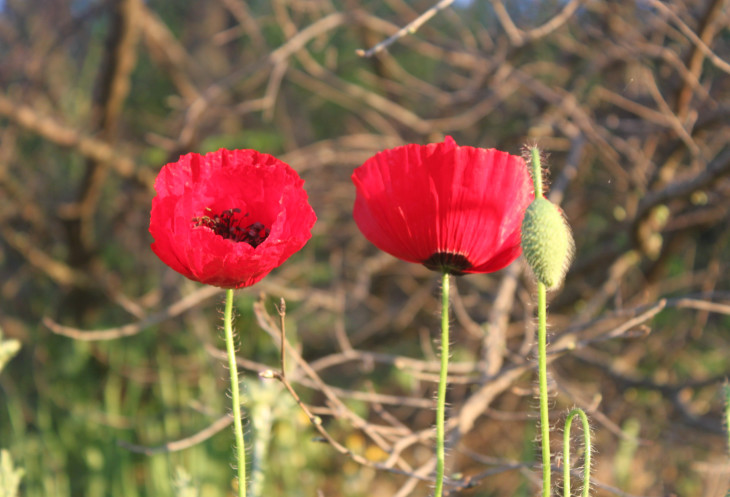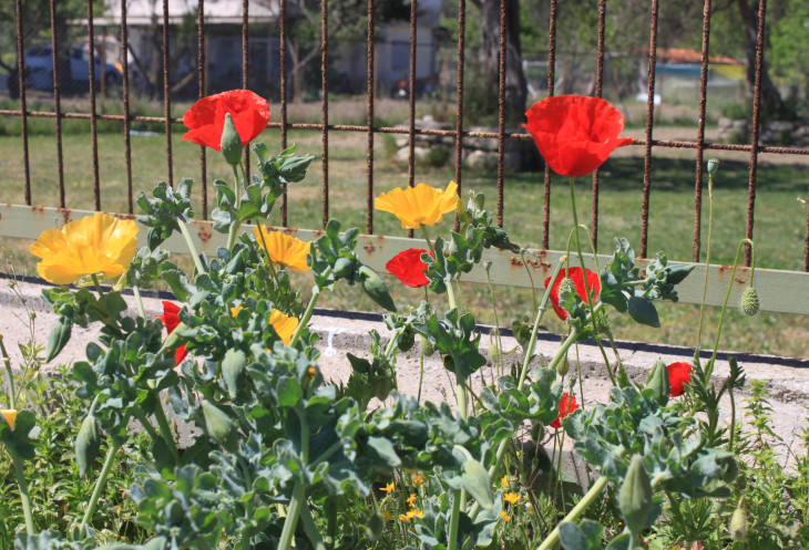 Вдоль обочин мы видим огромное количество цветущих маков. Это дичка.