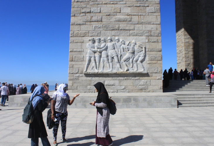 Места для пикника мы так и не встречаем до самого нашего прибытия в нужное место. Голодные, не ели со вчерашнего дня (если не считать тех жалких симитов, которые Эрсан покупал нам ранним утром), а время уже хорошо за полдень. И, что мне удивительно, никто из моих турок не жалуется. Только мы с Лейлой еле еле скрываем досаду и плохое настроение, которое присутствует у нас из-за голода. Но, делать нечего, в тайне досадуя, следуем к мемориалу.