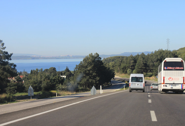 Некоторое время в пути мы ехали в утренних сумерках, потом вдруг как-то резко стало светлеть. И по левому борту нам показалось Мраморное море.