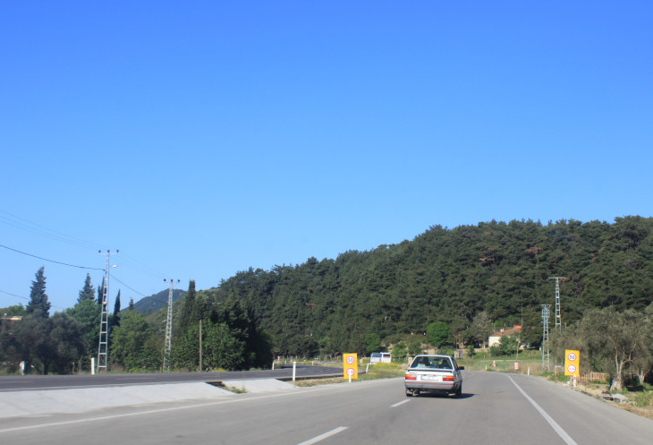 Все-таки берега Эгейского моря невероятно красивы! Сосновые леса, мягкие холмы, покрытые густой растительностью, бирюзовое море – все это настраивает только на миролюбивый лад и жизнелюбие. Участок вдоль моря не очень большой, мы уходим в глубь полуострова, если я не ошибаюсь с названием земли по географическим правилам. Дорога меняется, из хорошо асфальтированной принимает вид российской «бетонки», чуть позднее становится ясно почему: идет строительство туннелей под холмами.