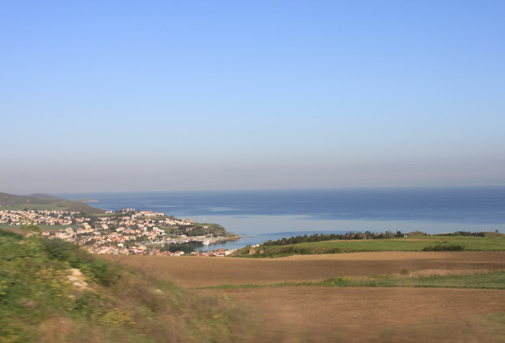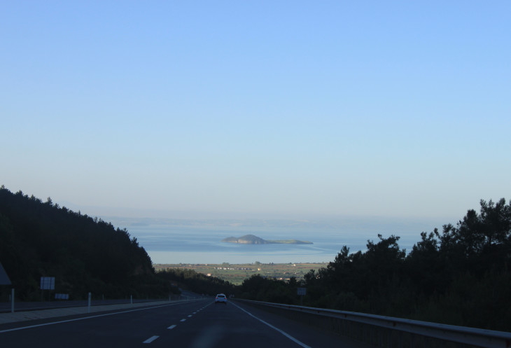 К своему стыду, у меня там случился географический кретинизм. Я знала, что мы будем видеть в этот день три воды, но полностью запуталась, где что. Хорошо, что есть интернет! «Вода» по правую руку оказалась Эгейским, а если уж быть совсем точным, то Фракийским морем.