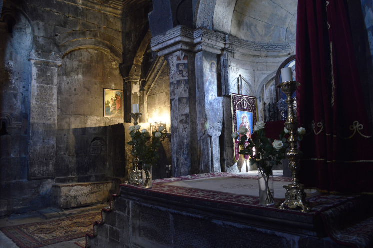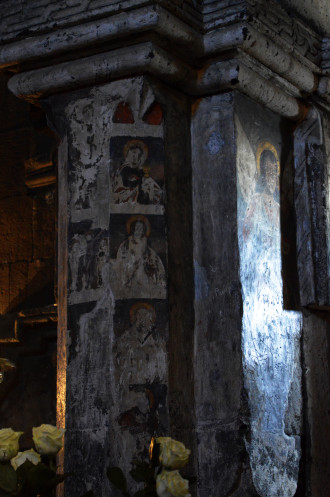 Снаружи стен,по периметру, высечена надпись, в которой говорится о жителях села, чьими средствами построена церковь и о трудностях прокладки оросительного канала.