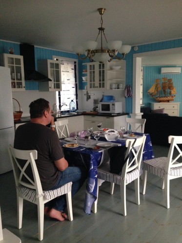 Да, дорога неблизкая, проехав три области - Московскую, Ярославскую, Костромскую, и въехав в Ивановскую мы, наконец, прибыли, дождем и не пахнет, по Волге носятся водные лыжники, набережная полна туристами, некоторые купаются, от сердца отлегло. А когда мы увидели наш чудный домик на воде и вошли в него, дорога длиною в день моментально была забыта, дом сделан с такой любовью и вкусом, предусмотрены, ну просто, все возможные мелочи и так комфортен, что отдых уже состоялся.