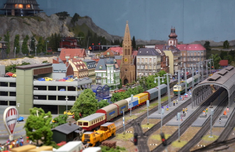 Уникальный по своим масштабам музей воссоздает карту железных дорог Чехии. Это сказочное королевство с городами, деревеньками, горами и замками. По рельсам бегут поезда, в городах едут трамваи, по дорогам колесят автомобили. Миниатюрные человечке спешат по своим делам. А когда день сменяется ночью в сотнях окошечек загорается свет.