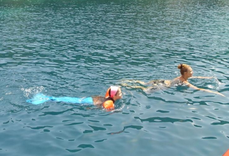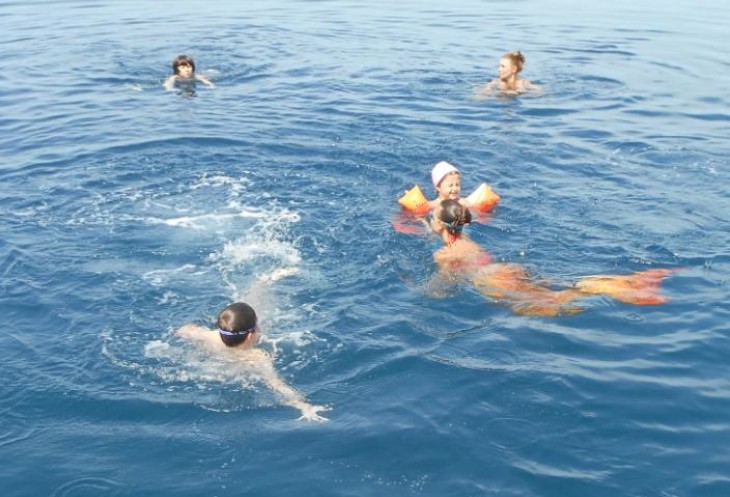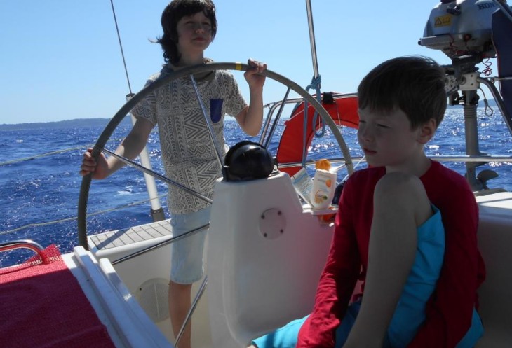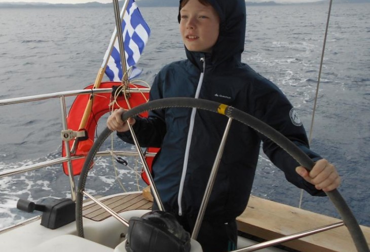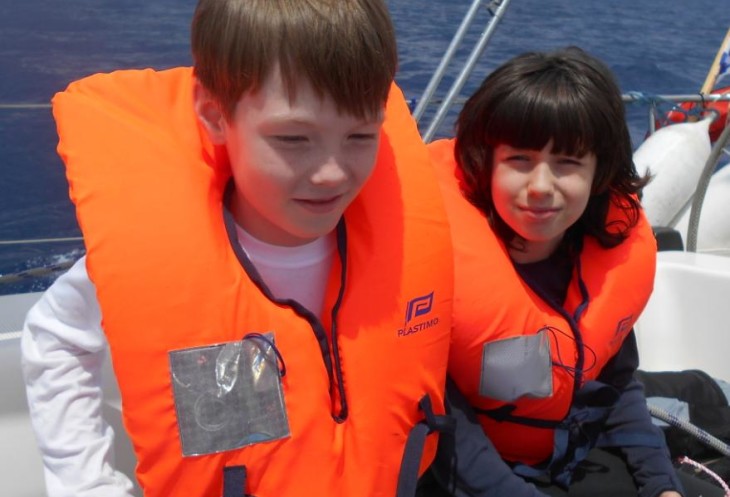 Ветер немного усилился, море волнуется, дети с восторгом рулят.