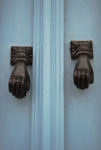 На улицах никого нет-сиеста.Узкие ,пустынные улочки и синие двери.