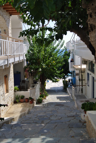 Искупавшись и передохнув, отправляемся в горы, в д. Крустас. Традиционная деревенька, много заброшенных полуразвалившихся домов, главная улица увита зелеными арками. И храм, находящийся в дессонансе с окружающими строениями. В местной таверне очень вкусный кофе.