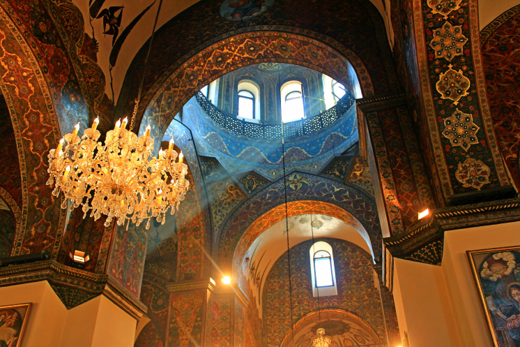 Живописно ниспадающие из окон верхнего купола лучи дневного света в купе с божественным льющимся церковным пением и прекрасной росписью стен оставили неповторимый след в моей памяти.
