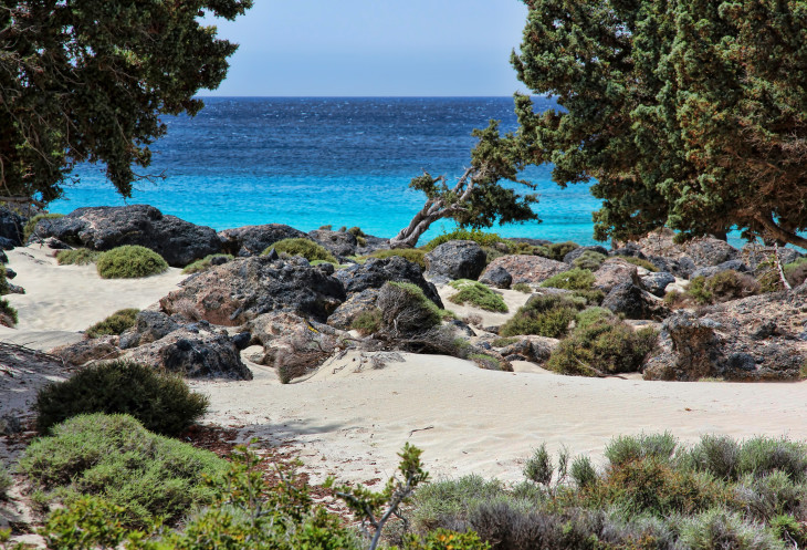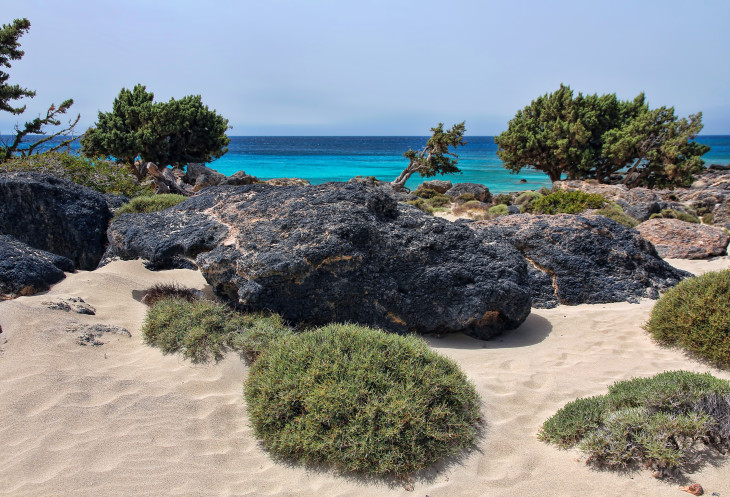 Этот пляж, несомненно, одно из самых красивых мест на острове. Казалось бы, мы приехали прямо с Элафониси - неужели есть на Крите еще что-то, настолько же потрясающее? Оказалось, что есть! Да, пляж совсем не такой, но он прекрасен по-своему. Можжевельник, дюны, живописные камни, мягкий песок, уютные бухточки... Тишина! И это всего в каком-то километре-двух по прямой от загруженного в это время суток Элафониси. О цвете воды я говорить не стану - смотрите сами :)
