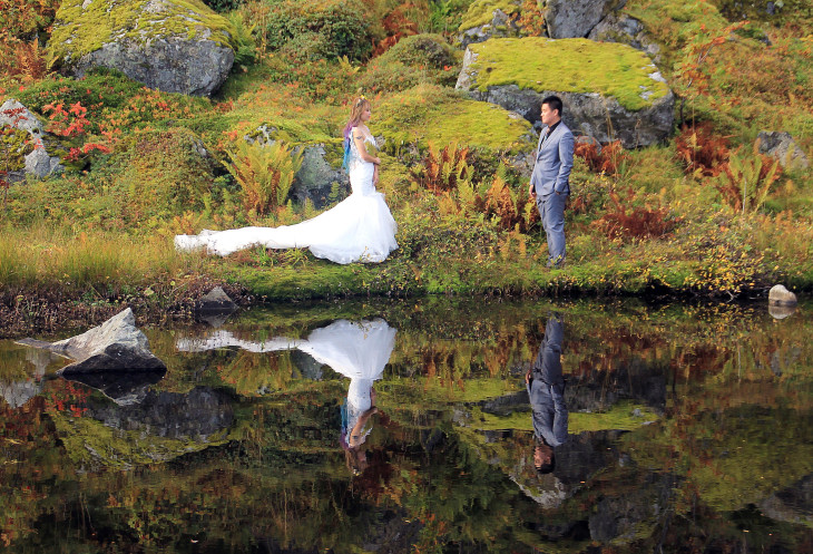 Едем обратно в наш «рорбу» (напоминаю – так называются здесь домики на сваях). По дороге тормозимся и некоторое время наблюдаем фотосессию китайских молодоженов.
