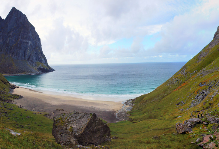 Слева на панорамке виден перевал, с которого мы спускаемся, справа - пляж Квалвик. Увидеть можно только при просмотре в полном размере.