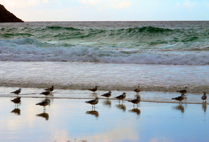 Очень интересный зеркальный эффект создает мокрый песок у береговой линии.