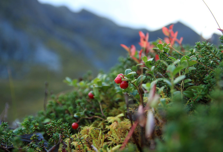 Здесь растет еще какая-то ягода, внешне напоминающая чернику, однако, нам не знакомая и есть ее мы опасаемся.