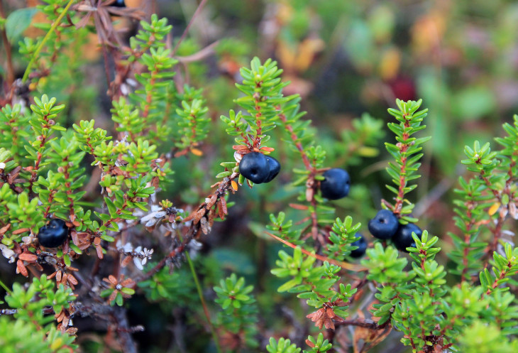 Уже потом, пользователь Leonidiys, спасибо ему, комментируя это фото, объяснил, что это вороника или водяника вполне съедобная ягода. Жаль мы не знали и не попробовали. Будет повод еще разок в Заполярье съездить! ))).