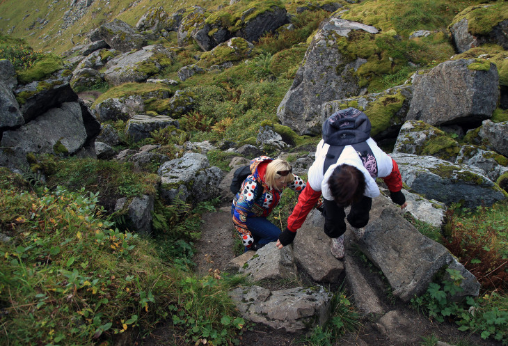 а, собственно, где на Лофотенах они плохие?! В особо сырых местах на тропе лежат деревянные мостки. Идти действительно не сложно,