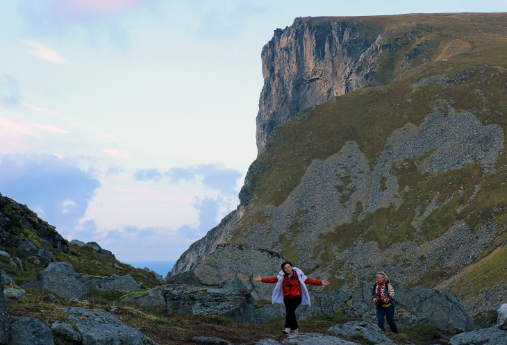 Мы спускаемся, а навстречу нам с пляжа поднимется группа молодежи, похоже школьники, человек 40, видимо приехавших сюда на том самом автобусе. Спрашиваем откуда ребята? Норвежцы! Помогают им здесь изучать родной край. Молодцы!