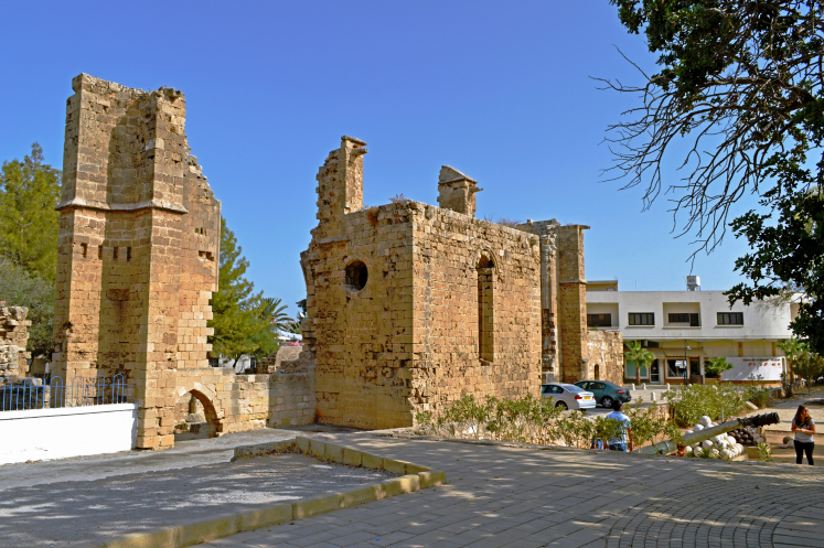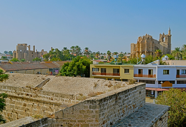 Фамагуста,когда была в руках генуэзцев, а потом и венецианцев , оставалась единственным крупным портом между Европой и Азией и процветала, благодаря активной торговле. Купцы и судовладельцы того времени утопали в роскоши, но не забывали и о городе. Считалось, что богатство города можно оценить по количеству церквей в нём. Так вот по этому показателю Фамагуста являлась одним из лидеров. "Город 365 церквей" − так когда-то говорили о ней. Сейчас от них почти ничего не осталось.Здесь виноваты и землетрясения и военные обстрелы,ну и англичане тоже " приложили руку". При строительстве Суэцкого канала отсюда, как и из других городов Кипра, было вывезено множество камней из, разобранных ими, полуразрушенных храмов города. Поэтому большинство старинных церквей Фамагусты остались только в виде руин.