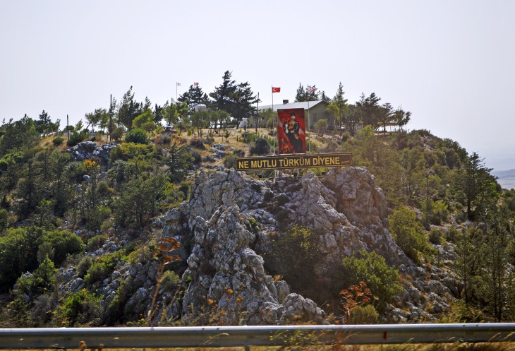 Недалеко от Никосии ,на южном склоне Киренийского хребта выложены два флага - турецкий и флаг непризнанной Турецкой Республики Северного Кипра, которые подсвечиваются в ночное время. Площадь этих флагов по размеру равна 17-ти футбольным полям. Это сделано специально,что бы на греческой стороне были видны эти флаги и постоянно напоминали о... В общем опять политика..!
