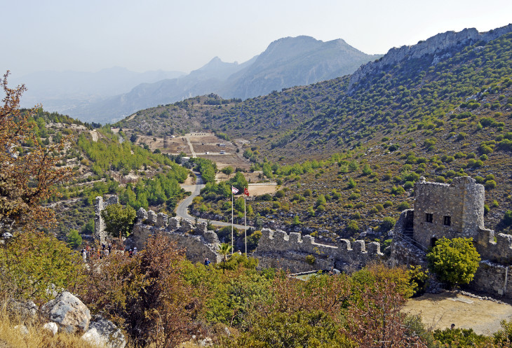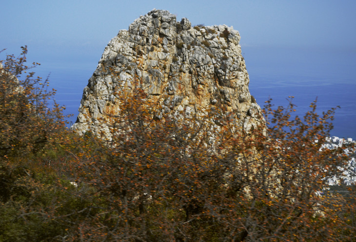 Тем временем гид нам рассказывает о трех горных замках,расположенных на Киренийском хребте и горе Пентадактилос (по турецки Бешпармак) ,что означает Пять пальцев. Множество легенд связано с этой горой и каждым из замков.