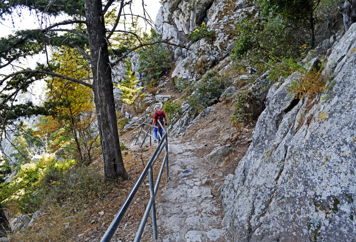 Преодолев небольшой подъем на второй уровень,Одиссей нам объявляет,что дальше он не полезет,а кто хочет ,то осталось сорок минут и может подняться к знаменитой башне Джона и на самую высокую точку горы,которая обозначена картонным рыцарем.