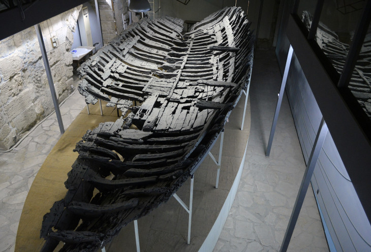 Последним для нас был Музей Античного Корабля.Здесь представлены окаменевшие останки деревянного корабля,затонувшего в IV веке до нашей эры, во времена Александра Македонского.