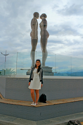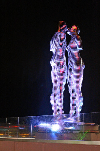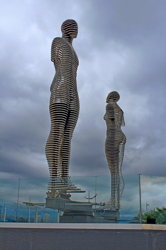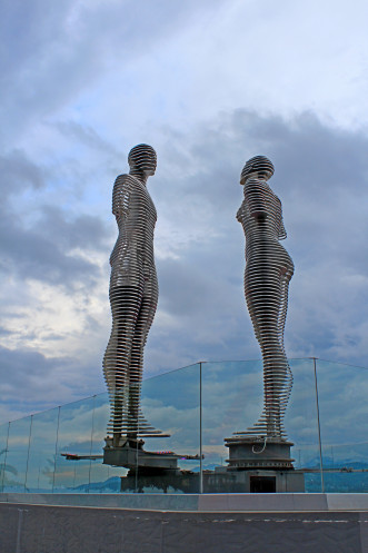 Инсталляция на набережной города Батуми под названием «Али и Нино» представляет собой две движущиеся фигуры мужчины и женщины, которые за 5-10 минут успевают слиться в поцелуе и разойтись, проходя друг через друга.