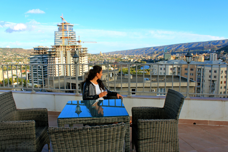 Упаковав вещи и вино к отъезду (а бутылок у нас было не много не мало 12 бутылок вместе с армянскими), мы провели свой последний вечер в Грузии на террасе отеля с вином и видом на ночной город.