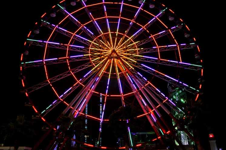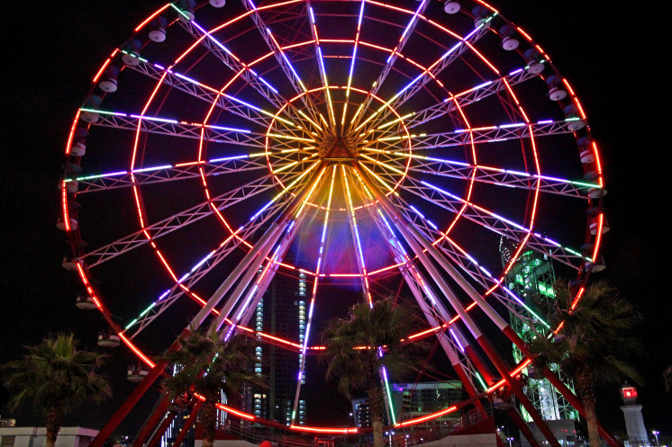 Всю красоту Батуми можно лицезреть с местного колеса обозрения. Этот маленький экстрим стоит всего лишь 3 лари. Один круг на этом колесе продолжается 10 минут. Оно поднимает на 55 метровую высоту, откуда виден весь Батуми.