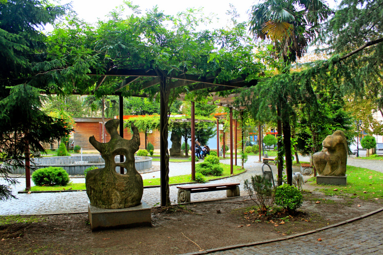 Съехав утром с квартиры в Батуми, мы отправились во второй по величине (после столицы) город Грузии – Кутаиси. Припарковав машину в центре города, мы вышли осматривать исторический район столицы Имеретии. В центре большой проезжей площади возвышается многоярусный фонтан со статуями рогато-копытных животных. Огромное каскадное сооружение иллюстрирует мифы о древней Колхиде.