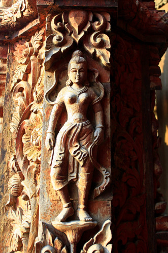 Весь храм выполнен в стиле старинной кхмерской архитектуры и прославляет местных мастеров. Искусные резчики по дереву переняли свой талант, умение и терпение от древних мастеров и продолжают их традиции.