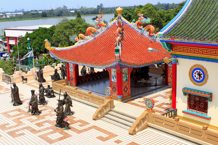 С балкона третьего этажа открывается площадка с многочисленными статуями известных китайских личностей и шаолиньских монахов. Словно большая шахматная доска с фигурами в человеческий рост.