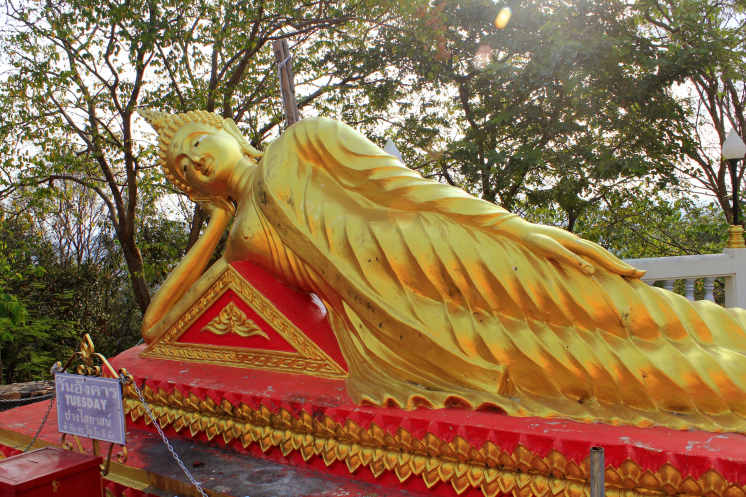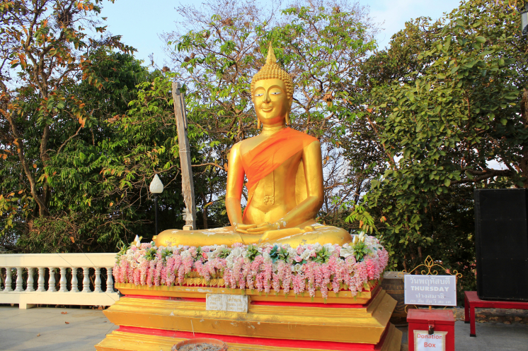 Гора золотого Будды Кхао Чи Чан - самое большое скальное изображение Будды. В 1996 г. сын покойного короля Рамы 9го (ныне здравствующий Рама 10ый) инициировал создание золотого изображения Будды в честь 50-летия правления отца. Проезжая мимо, он заметил отвесную скалу не природного происхождения и кинул клич стране на сбор средств. Средства на золотого Будду собирали всей страной, принимались любые пожертвования (самое значительное конечно же совершил сын).
