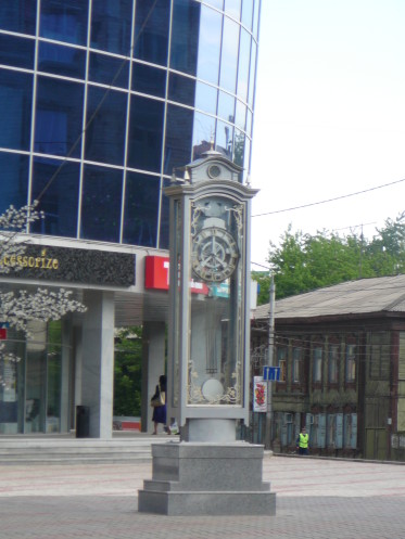 Перед рестораном «Сударь» те самые, упомянутые раньше, песочно-паровые часы (циферблаты тоже есть).